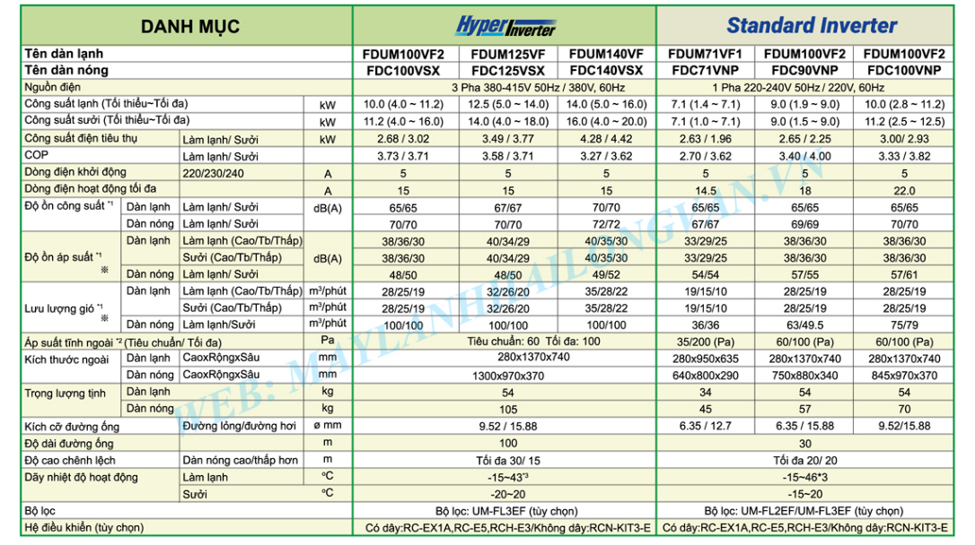 Thông số kỹ thuật FDUM100VF2/FDC90VNP