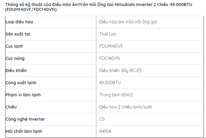 Ưu điểm về sự yên tĩnh trong khi hoạt động là điểm cộng của Máy lạnh giấu trần ống gió Mitsubishi Heavy FDUM140VF - FDC140VNA (5.5Hp) inverter.