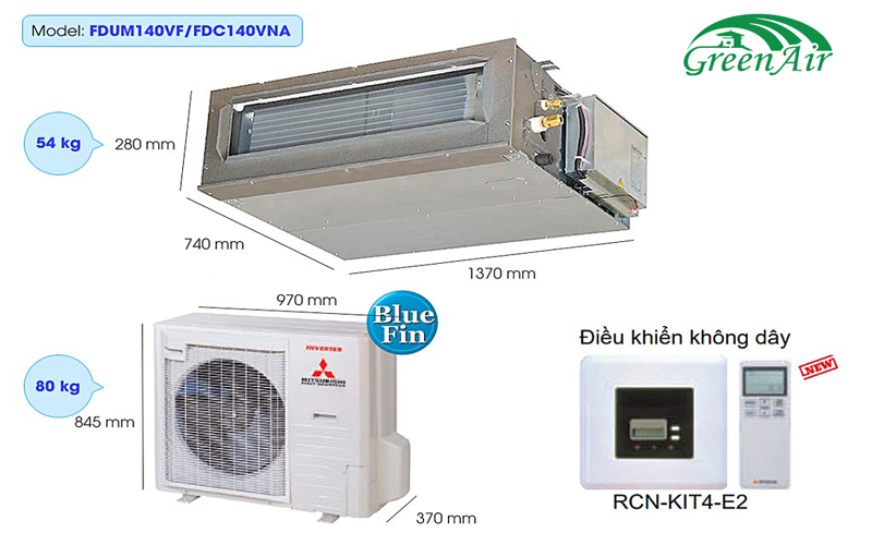 Máy lạnh giấu trần ống gió Mitsubishi Heavy FDUM140VF - FDC140VNA (5.5Hp) inverter với thiết kế nhỏ gọn chỉ 280mm có thể lắp đặt dễ dàng mọi không gian khác nhau. Đặc biệt những khu vực có trần thấp.