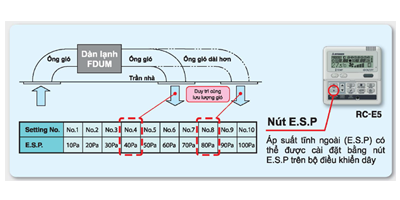 Có thể điều khiển áp suất tĩnh ngoài 1 cách tự động ( E.S.P)