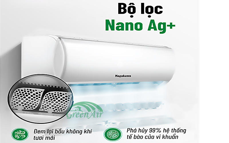 Bộ lọc Nano Ag + tcủa Nagakawa 9000btu NS-C09R1M05 có thể phá hủy tới 99% hệ thống tế bào của vi khuẩn, mang lại cho chúng ta một bầu không khí tươi mới trong khoảng thời gian dài.