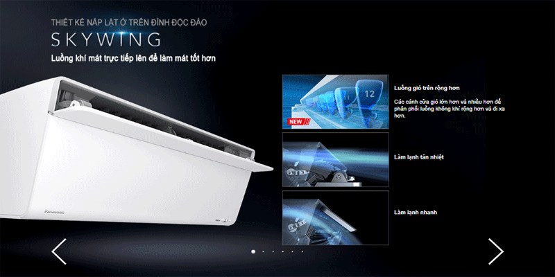 Máy lạnh Panasonic 1.5HP XU12UKH-8 Inverter R32 sử dụng cánh đảo gió kép AEROWINGS giúp luồng gió đi xa và nhanh hơn, công nghệ lọc không khí NANO và cánh đảo giá linh hoạt skywing.