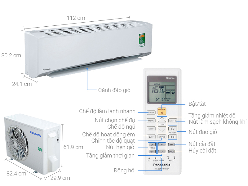 Thông tin cục nóng :619 x 824 x 299 mm - 32 kg