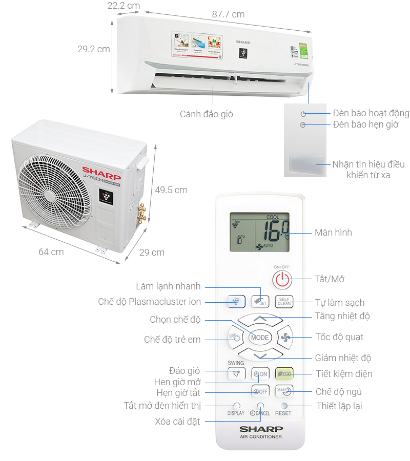 Thông tin cục lạnh: Dài 87.7 cm – Cao 29.2 cm – Dày 22.2 cm – Nặng 8 kg