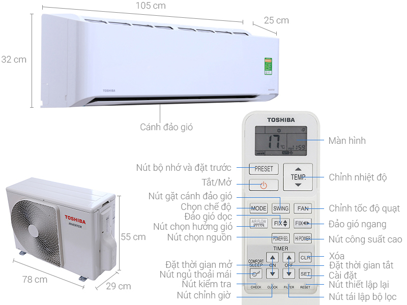 | Thông tin dàn nóng | 550 x 780 x 290 mm |