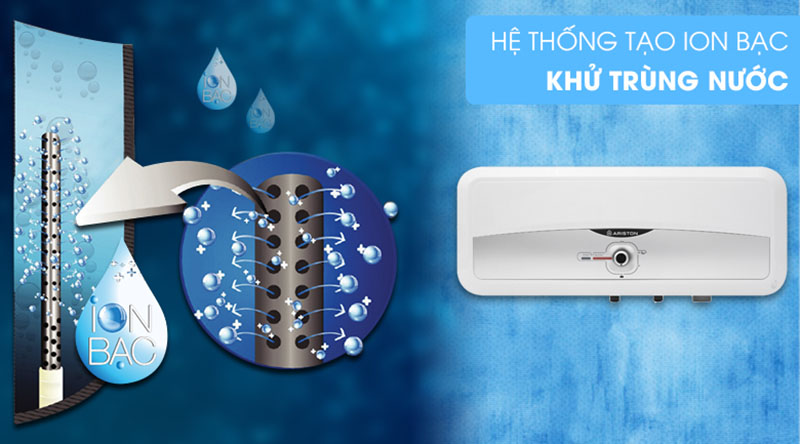 Máy nước nóng Ariston SL2 20 RS AG+ 2.5 FE được trang bị hệ thống tạo ion bạc, có khả năng diệt đến 99% các loại vi khuẩn có trong nước, giúp nguồn nước tắm luôn được sạch sẽ, từ đó giúp gia đình của bạn tránh được các bệnh ngoài da.