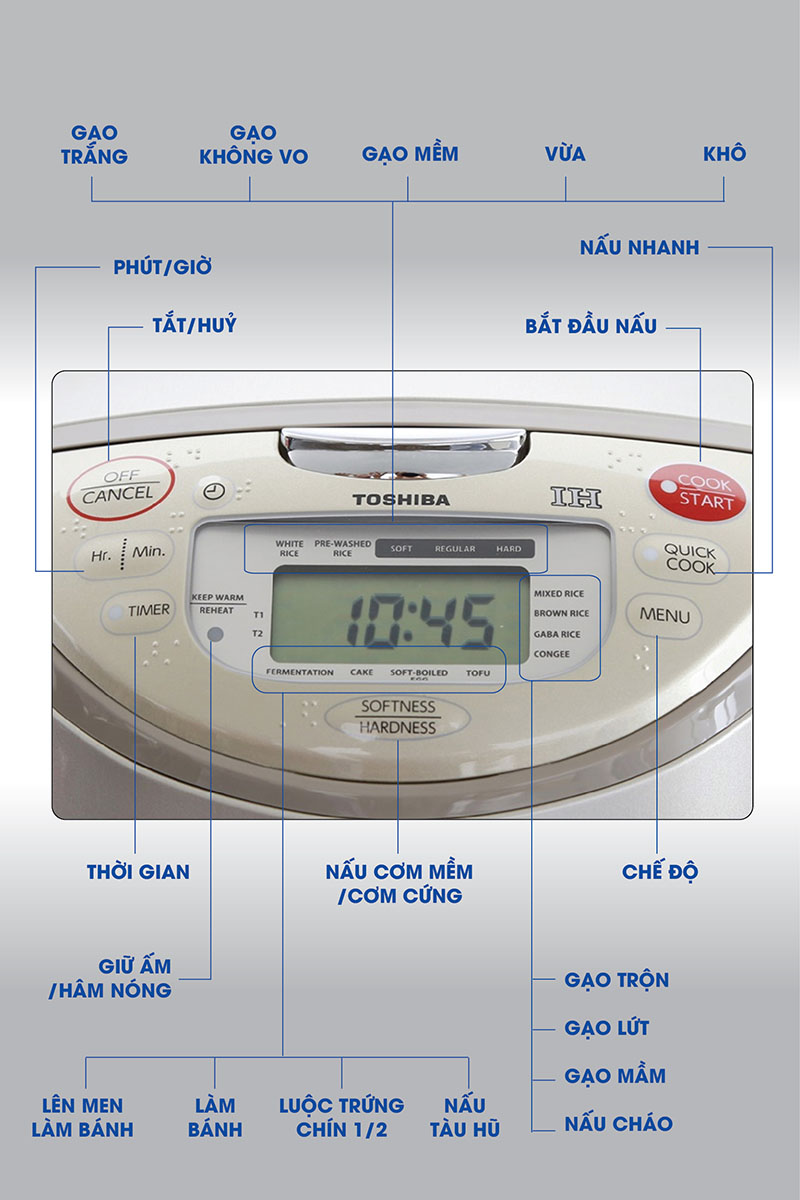 Nồi cơm điện cao tần Toshiba 1.8 lít RC-18RH(CG)VN nhiều chức năng, nấu ăn ngon, đa dạng, thích hợp sử dụng trong gia đình, nhà hàng, khách sạn…