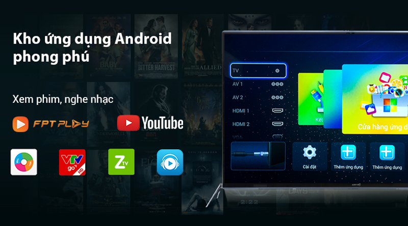 Smart tivi Asanzo chạy hệ điều hành Android với kho ứng dụng phong phú