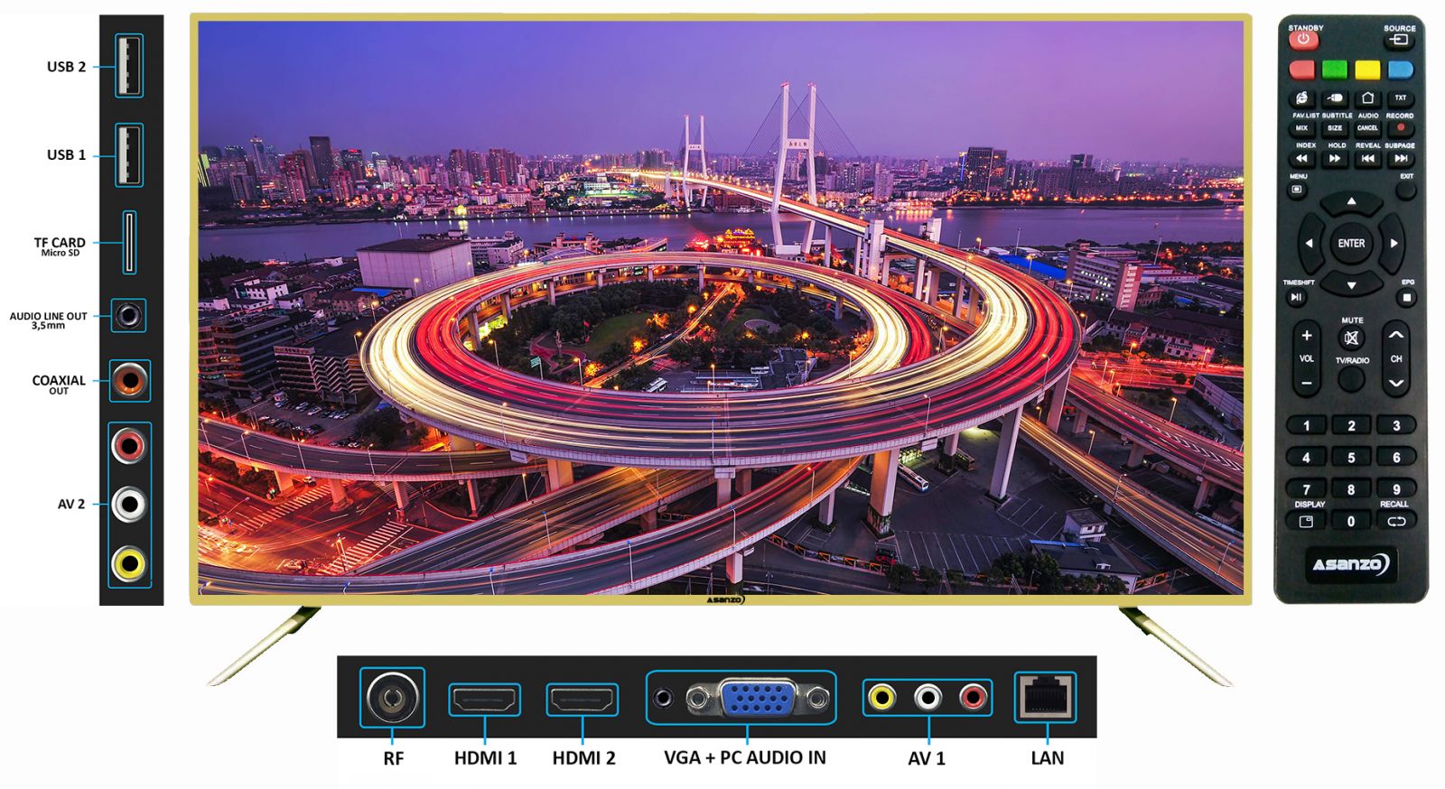 Kết nối tiện lợi cho hệ thống nghe nhìn của bạn nhờ có một hệ thống phương tiện truyền thông mạnh mẽ giúp người dùng dễ dàng phối ghép với các thiết bị số trong nhà qua các cổng kết nối HDMI, VGA. Kết nối USB cũng được Asanzo trang bị cho phép người dùng xem phim, nghe nhạc qua thẻ nhớ USB, mang lại trải nghiệm thú vị không kém so với các dòng TV khác trên thị trường hiện nay.