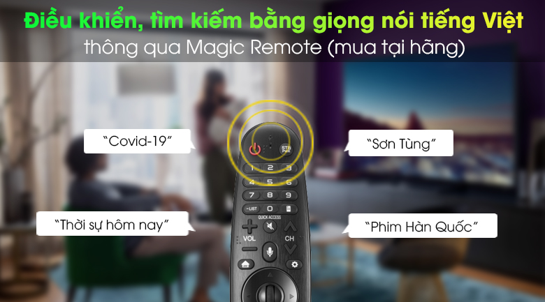 Smart tivi LG thông qua Magic Remote có hỗ trợ tiếng Việt sẽ cho phép bạn điều khiển bằng giọng nói của mình, chỉ cần nói và những nội dung mong muốn tương ứng sẽ hiển thị trên màn hình để bạn lựa chọn.