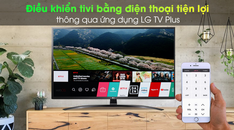 | Điều khiển tivi bằng điện thoại | Bằng ứng dụng LG TV Plus |