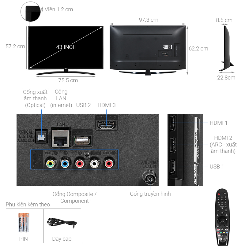 Tivi LG 43 inch dễ dàng để sử dụng đặt bàn hoặc treo tường, phù hợp cho các không gian như phòng khách, phòng họp, phòng ngủ...