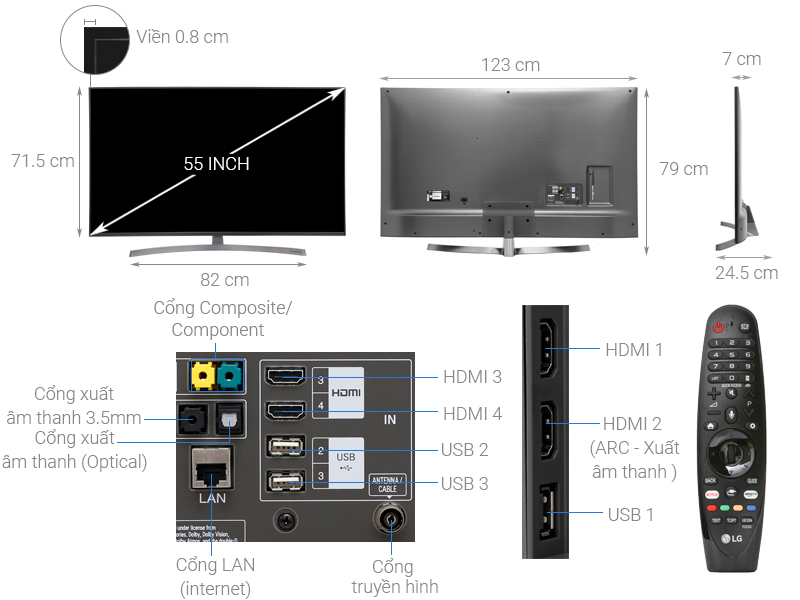 Thông số kỹ thuật chi tiết Smart Tivi LG 4K 55 inch 55SK8000