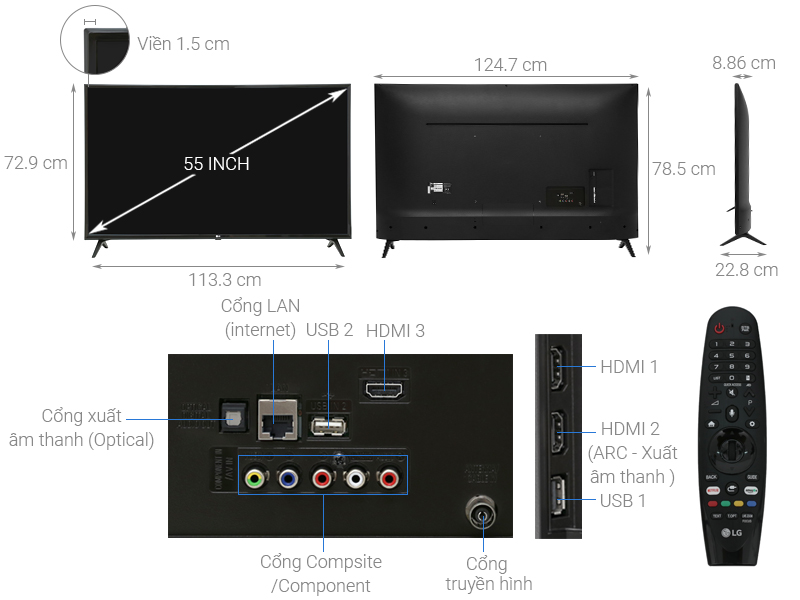 Thông số kỹ thuật chi tiết Smart Tivi LG 4K 55 inch 55UK6320