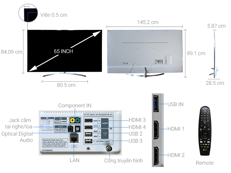 Tivi LG 65 inch được tích hợp trực tiếp công nghệ màn hình Nano Cell, công nghệ LCD mới nhất của LG (tính đến thời điểm tháng 5/2017) vào tấm màn hình giúp cải thiện đáng kể chất lượng hình ảnh, vượt xa các phương pháp thông thường.