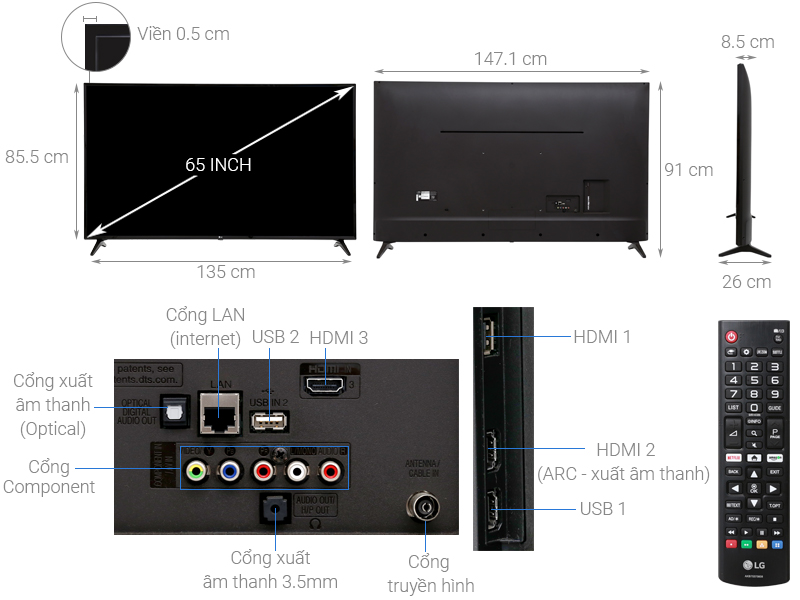 Màn hình tivi LG 65 inch rất thích hợp đặt tại các không gian rộng rãi như phòng khách, phòng họp,...