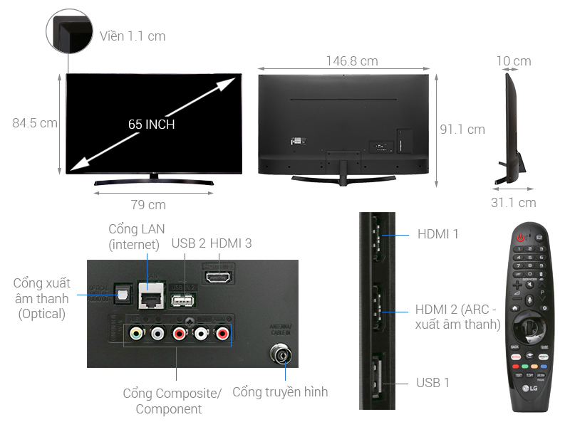 Thông số kỹ thuật chi tiết Smart Tivi LG 4K 65 inch 65UK6340
