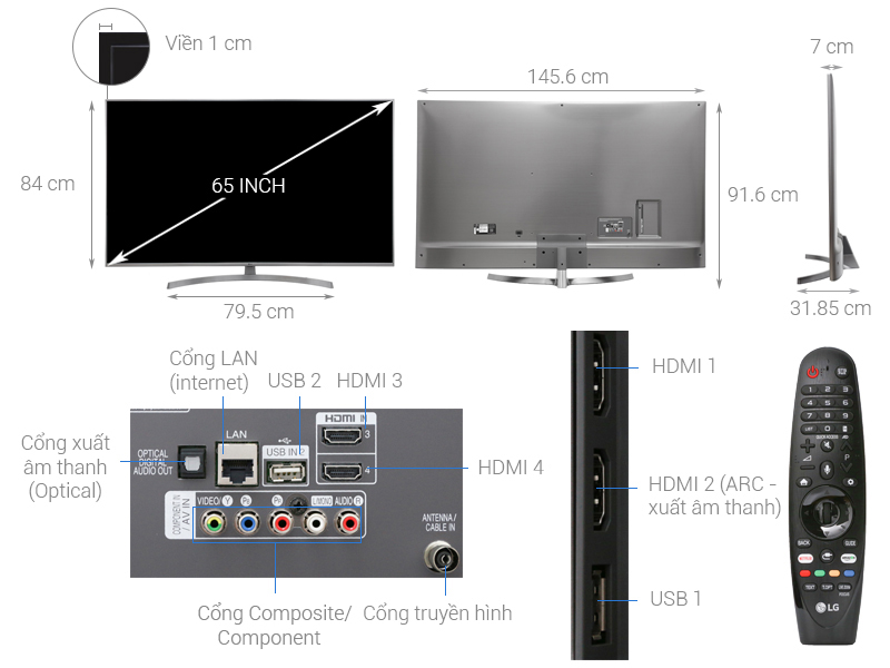 | Công nghệ xử lý hình ảnh | Công nghệ Nano Cell thế hệ thứ 2, Dải tương phản động mở rộng HDR 4K Cinema HDR, 4K HFR, Ultra Luminance, 4K Upscaler |