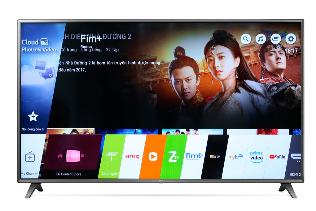 Hệ điều hành WebOS 4.0 dễ sử dụng, đi kèm remote thông minh hỗ trợ tìm kiếm giọng nói bằng tiếng Việt cả 3 miền.
