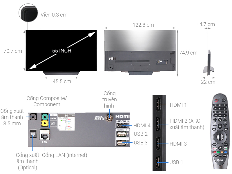 Thông số kỹ thuật chi tiết Smart Tivi OLED LG 4K 55 inch 55B8PTA