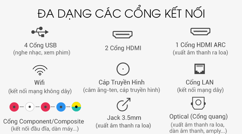 | Công nghệ xử lý hình ảnh | Nâng cấp hình ảnh gần chuẩn 4K, ULTRA Luminance, Tru ULTRA HD Engine, 3D Color Mapping |