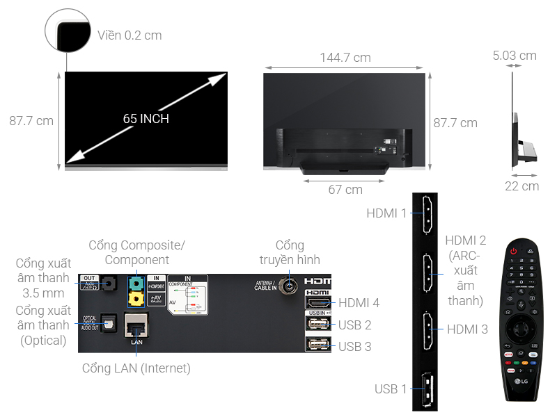 Smart Tivi OLED LG 4K 65 inch 65E9PTA với thiết kế viền siêu mỏng chỉ 0.2 cm (gần bằng 1/4 iPhone Xr) dễ dàng hòa hợp với mọi không gian như một bức tranh nghệ thuật trong nhà bạn, cho cảm giác sang trọng, tinh tế.
