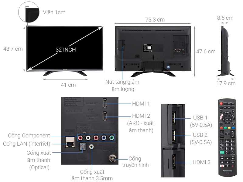 Thông số kỹ thuật chi tiết Smart Tivi Panasonic 32 inch TH-32FS500V