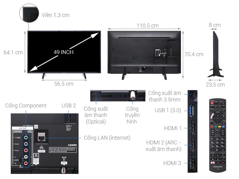 Kích thước màn hình tivi Panasonic 49 inch thích hợp bố trí vào không gian nội thất như phòng khách, phòng ăn,...
