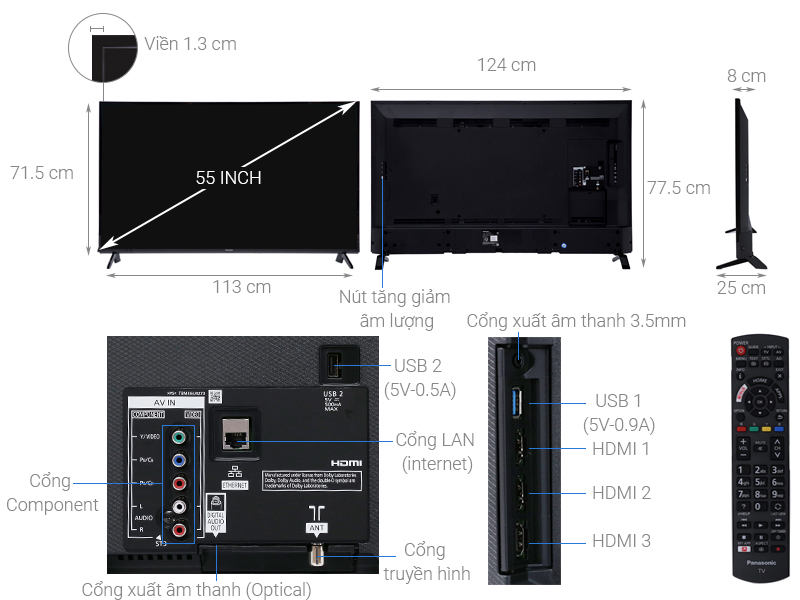 Thông số kỹ thuật chi tiết Smart Tivi Panasonic 4K 55 inch TH-55FX600V