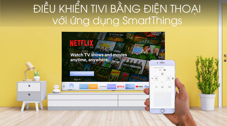 | Điều khiển tivi bằng điện thoại | Bằng ứng dụng SmartThings |