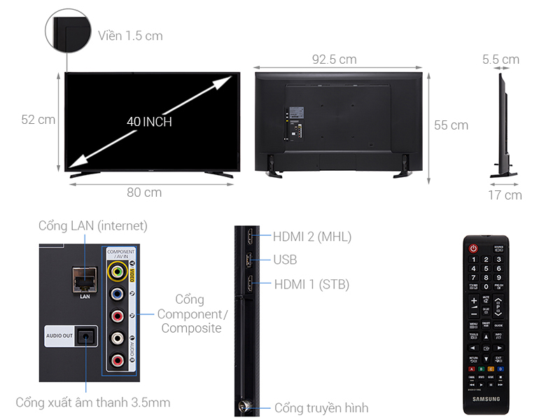 Thông số kỹ thuật chi tiết Smart Tivi Samsung 40 inch UA40J5250D