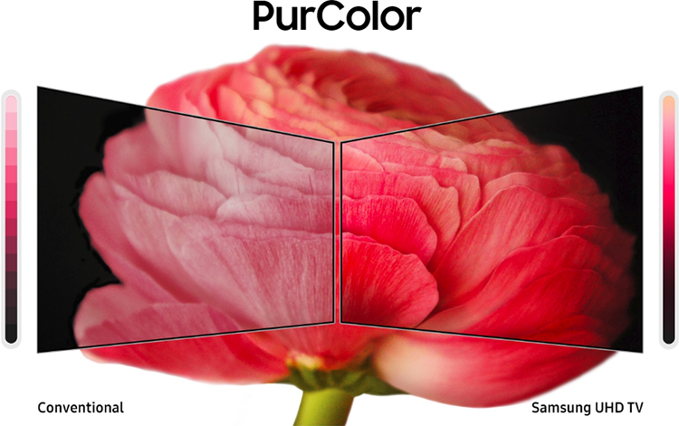 Công nghệ PurColour trên smart TV Samsung tạo màu sắc chân thực, sống động trong từng khung hình, tận hưởng từng khoảnh khắc, hình ảnh sắc nét đến từng chi tiết, cho bạn cảm giác như đang lạc vào thế giới đầy màu sắc.
