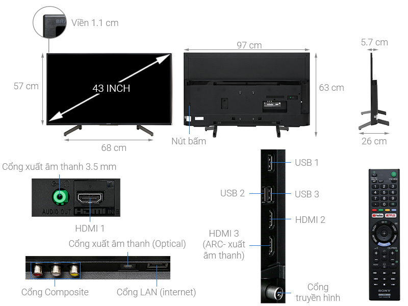 Thông số kỹ thuật chi tiết Smart Tivi Sony 4K 43 inch KD-43X7000G