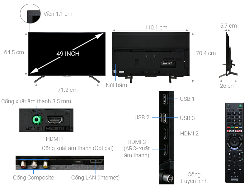 Thông số kỹ thuật chi tiết Smart Tivi Sony 4K 49 inch KD-49X7000G