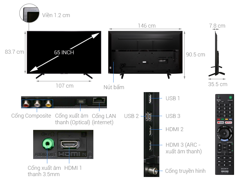 Thông số kỹ thuật chi tiết Smart Tivi Sony 4K 65 inch KD-65X7000F