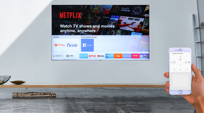 Bạn có thể điều khiển tivi bằng điện thoại, chiếu hình ảnh, video từ điện thoại lên tivi cho cả nhà cùng xem thông qua ứng dụng Samsung SmartThings tiện lợi.