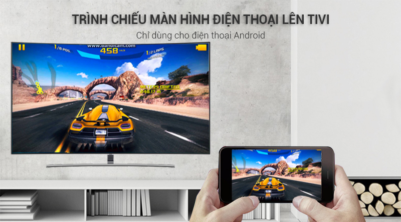 Với Tivi QLED Samsung này bạn có thể chiếu màn hình điện thoại Android lên màn hình tivi Samsung 4K này để chơi game, xem phim,...