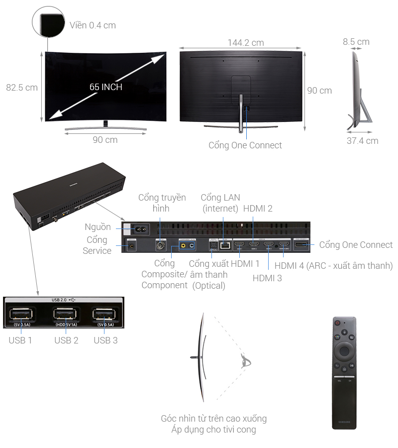 Thông số kỹ thuật Smart Tivi QLED Samsung 4K 65 inch QA65Q8CN