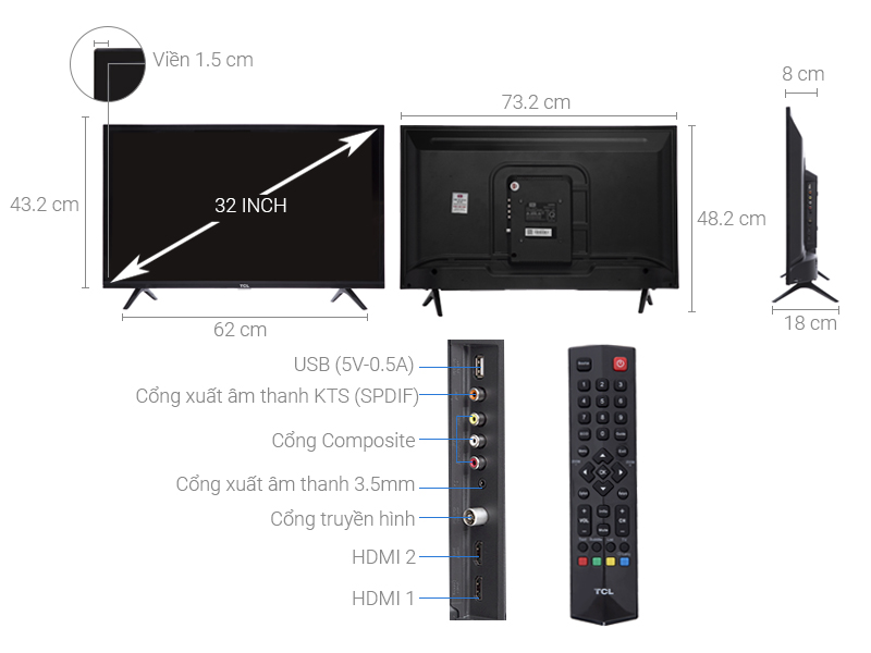 Thông số kỹ thuật chi tiết Tivi TCL 32 inch L32D3000