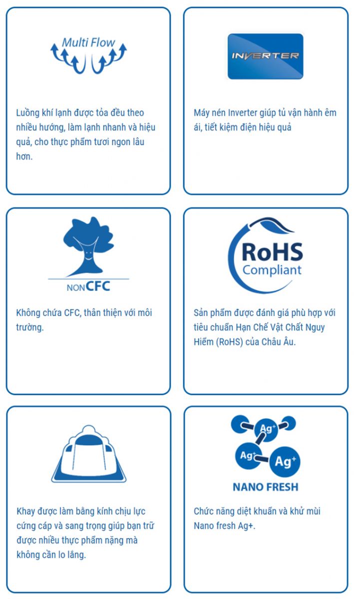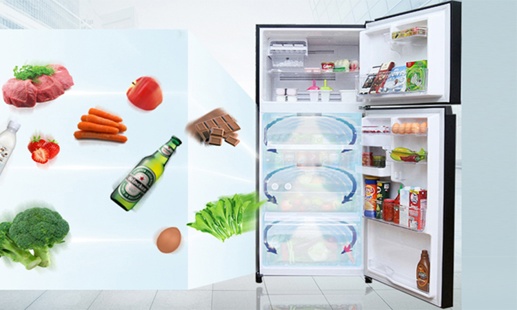 Tủ lạnh Inverter Aqua còn sử dụng luồng khí lạnh được tỏa đều theo nhiều hướng, lan tỏa đều giữa các ngăn, làm lạnh nhanh và hiệu quả, cho thực phẩm tươi ngon lâu hơn.