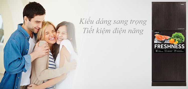 Tủ Lạnh Inverter Aqua AQR-I190DN-DC sở hữu thiết kế kiểu dáng chữ nhật góc cạnh cùng màu nâu ánh kim độc đáo, mới lạ tạo điểm nhấn nổi bật cho không gian nội thất của bạn.