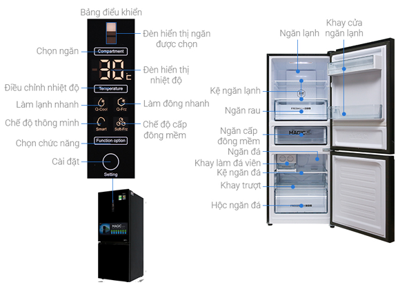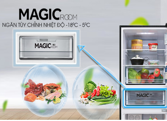 Điểm nhấn nổi bật của chiếc tủ lạnh Inverter 2 cửa này chính là được trang bị ngăn Magic Room đặc biệt, có khả năng tùy chỉnh nhiệt độ từ -18 đến 5 độ C sao cho phù hợp với nhu cầu bảo quản thực phẩm, mag đến cho người dùng sự tiện lợi tối ưu.