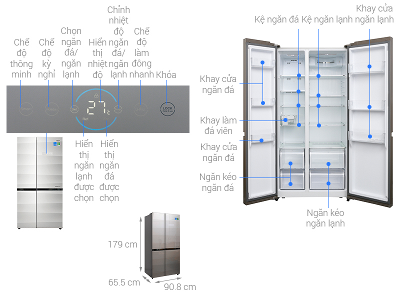 Với dung tích sử dụng lớn lên đến 518 lít cho không gian lưu trữ thoải mái, phù hợp cho gia đình có từ 4 - 5 thành viên trở lên.