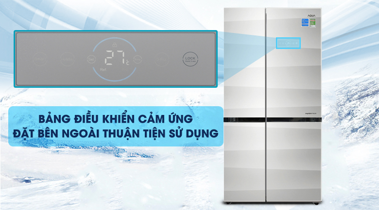 Được trang bị bảng điều khiển cảm ứng sang trọng, hiện đại được thiết kế ngay bên ngoài cửa tủ với nhiều cài đặt về nhiệt độ và chức năng giúp bạn dễ dàng điều chỉnh cũng như theo dõi được tình trạng của tủ.