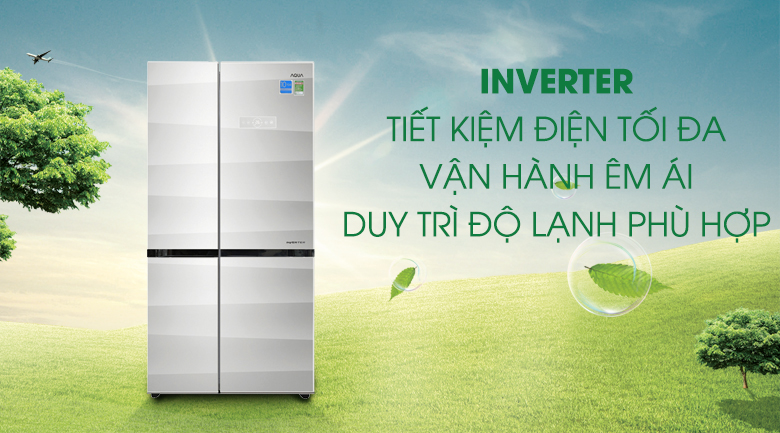 Được trang bị công nghệ Inverter giúp đảm bảo độ lạnh hợp lý, giúp thực phẩm tươi ngon lâu hơn. Ngoài ra công nghệ này còn giúp tủ lạnh Aqua 565 lít hoạt động rất êm ái, bền bỉ và tiết kiệm điện lên đến 40% lượng điện tiêu thụ hằng tháng.