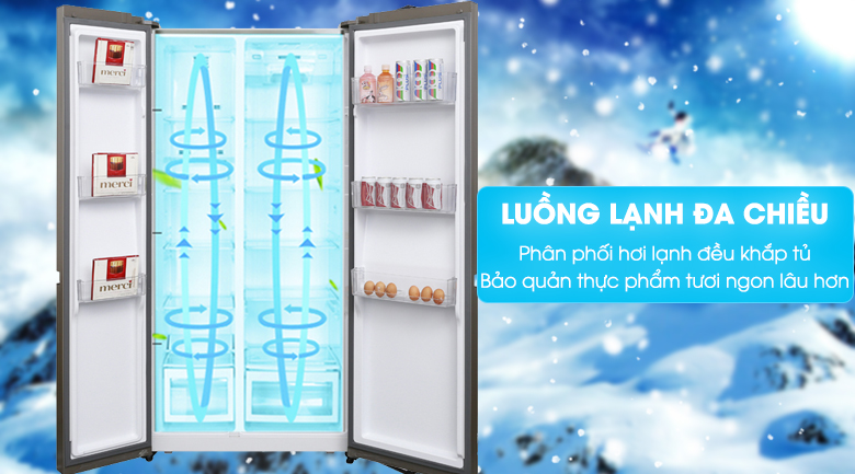 Tủ lạnh Aqua Inverter AQR-IG585AS GS được trang bị hệ thống làm lạnh đa chiều, luồng khí lạnh được tỏa đều theo nhiều hướng, làm lạnh nhanh và hiệu quả, cho thực phẩm tươi ngon lâu hơn.
