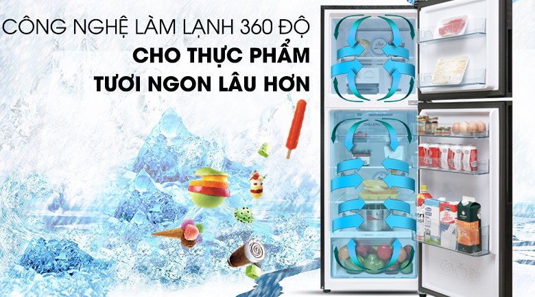 Hệ thống này sẽ đảm bảo cho tất cả thực phẩm trong tủ đều được làm lạnh đồng đều, giúp bảo quản thực phẩm tươi ngon lâu hơn, nhờ vào khả năng điều tiết các luồng khí lạnh di chuyển đa chiều 360 độ, đưa khí lạnh đến tất cả các khu vực trong tủ, làm lạnh hiệu quả cho thực phẩm.