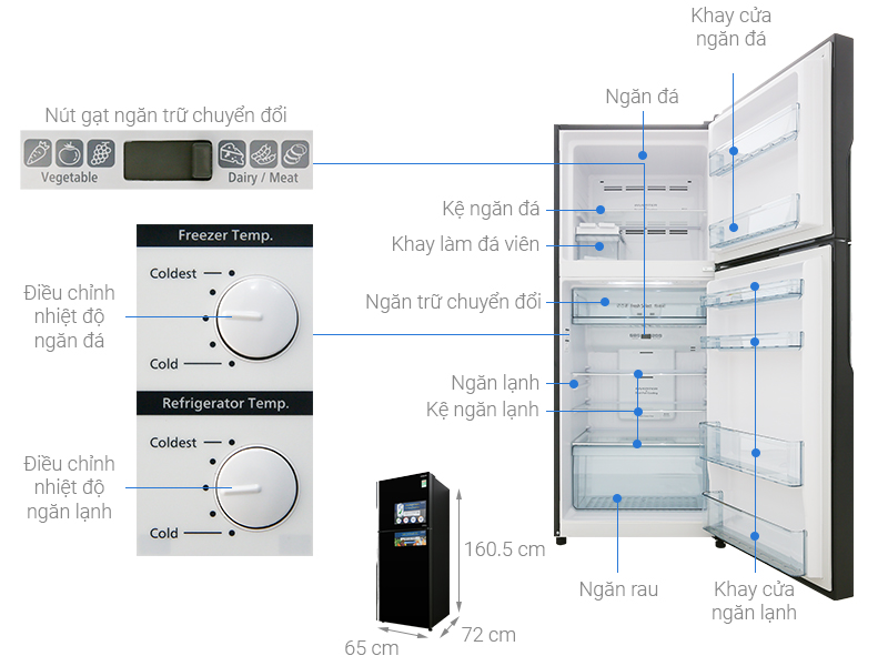 Điểm độc đáo trên chiếc tủ lạnh Hitachi R-FG450PGV8 GBK này còn nằm ở ngăn trữ chuyển đổi có thể tùy chỉnh nhiệt độ độc đáo. Với ngăn trữ này, bạn có thể chỉnh nhiệt độ 1 độ C để bảo quản thịt cá, sữa, làm mát thức uống hoặc 5 độ C để bảo quản trái cây, rau quả tiện lợi.