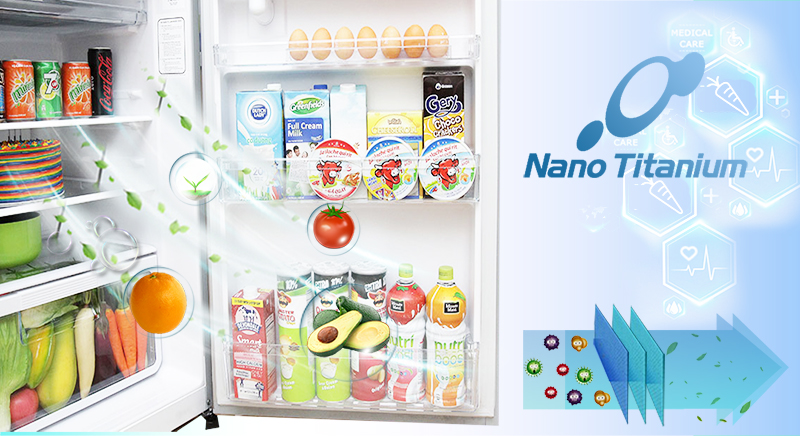 Tủ lạnh Hitachi 395 lít R-V470PGV3D SLS có màng lọc Nano Titanium độc đáo, khử mùi và kháng khuẩn mạnh. Việc này sẽ ngăn chặn vi khuẩn sinh sôi và phát triển bên trong tủ lạnh