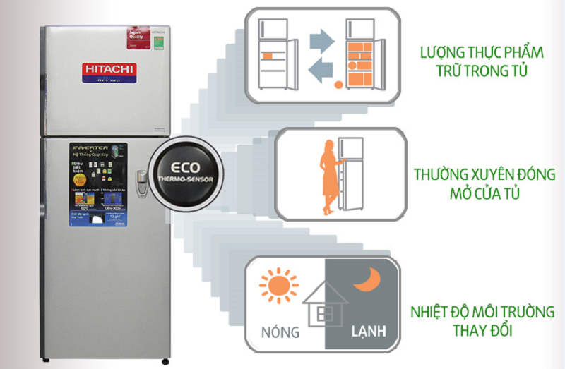Cảm biến nhiệt Eco của tủ lạnh Hitachi R-V470PGV3D SLS sẽ nhận biết nhiệt độ xung quanh và nhiệt độ môi trường, rồi từ đấy đưa đến chế độ làm lạnh trong tủ lạnh thích hợp, tiết kiệm điện.